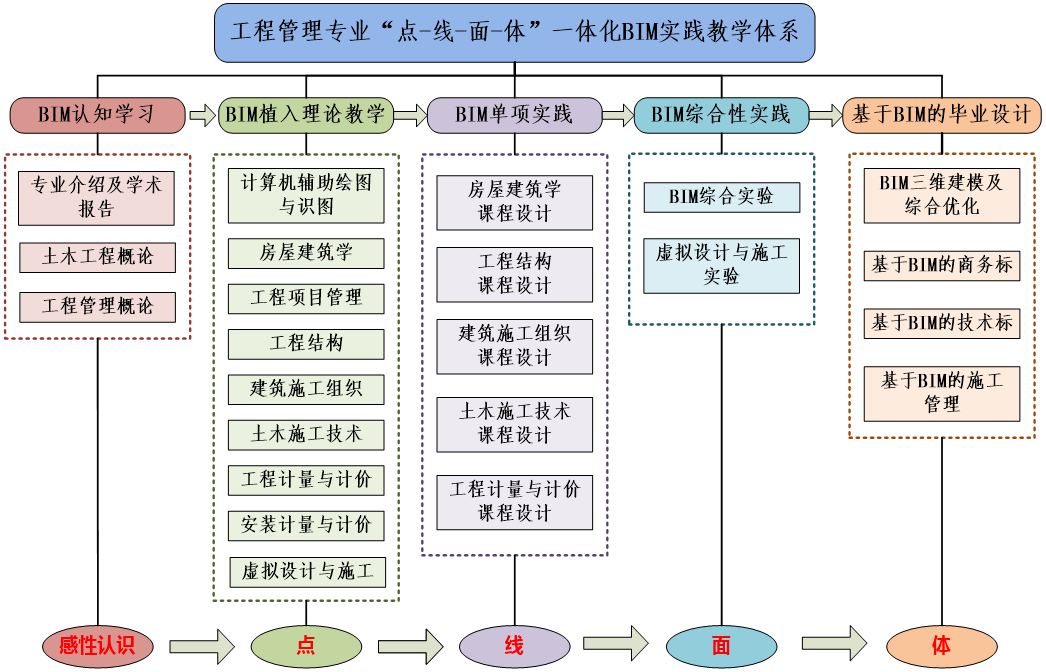 (2)以立德树人教育理念为指引,以一流应用型本科专业建设为目标,基于OBE理念,强化培养目标和毕业要求的达成,突出学科交叉,实现了工程技术、管理、经济、法律及信息学科的交叉融合;构建基于BIM技术的一体化实践教学体,有效提升了学生实践能力和创新精神;近5年,学生参与大学生创新创业训练计划项目100余人次,全国各类学科竞赛200余项。